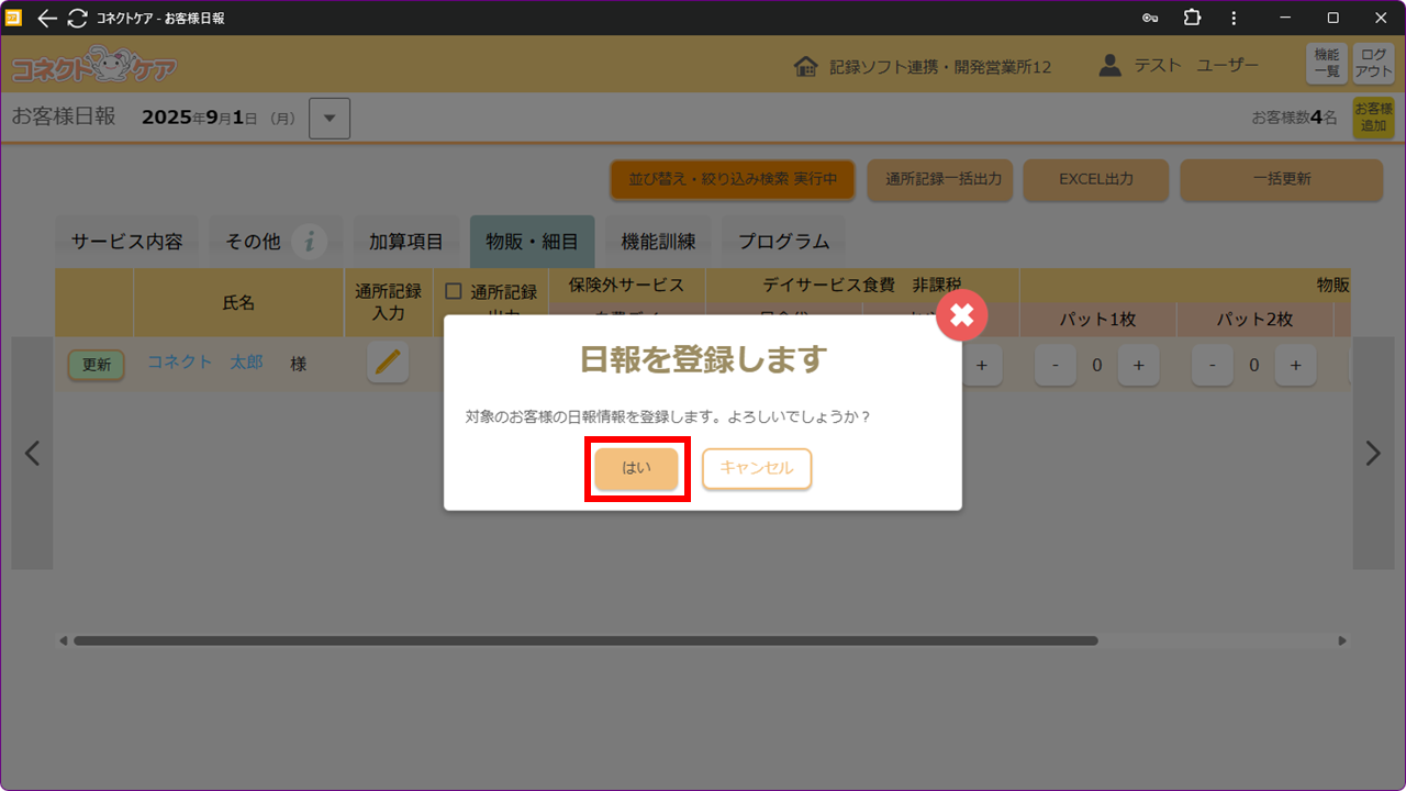自費利用(保険外サービス)のみを提供する日の登録方法です。本手順では、Suisuiで計画を登録し、コネクトケアで入力した実績を取り込むまでの流れをまとめています。