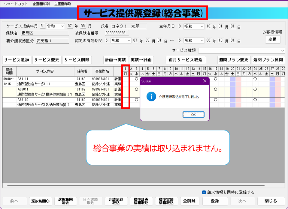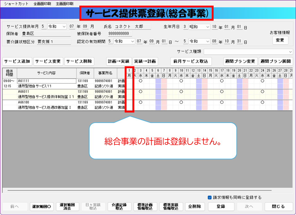 ※この時間設定は、介護保険の実績として連携されないようにするための仕様です。時間は変更しないでください。